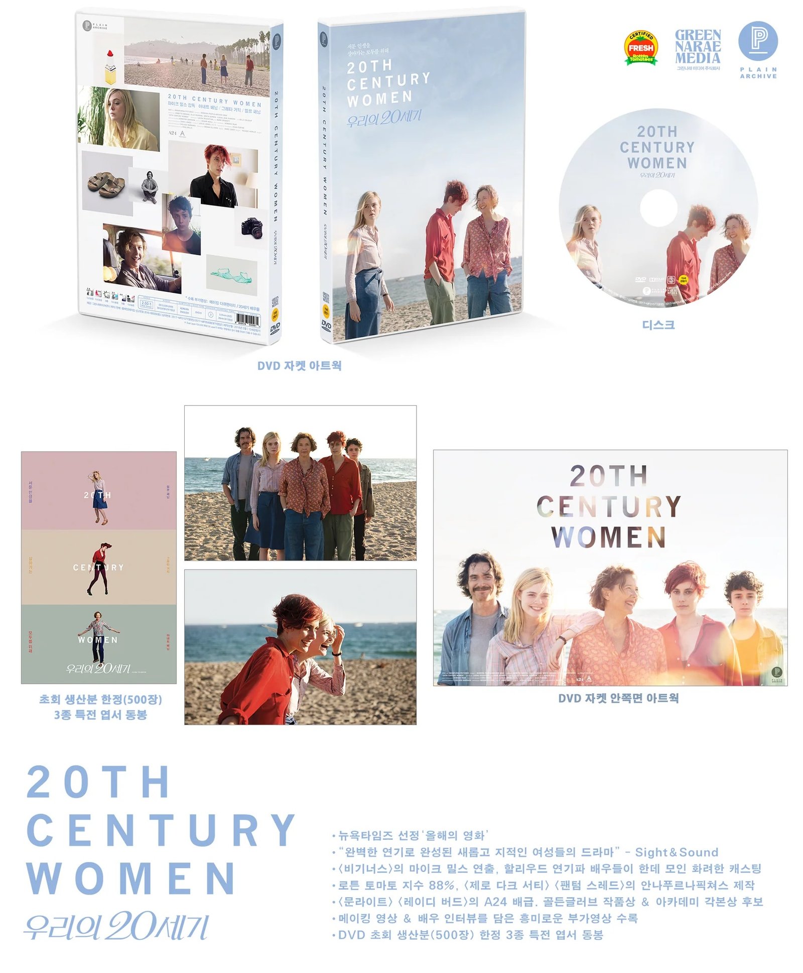 | PRODUCT INFO● Release date: 23rd May 2018● 3 Movie Postcards (First Press)| DISC SPECIFICATIONSVideo - 2.00:1 MPEG2 / 480p / 29.97fps (NTSC)Audio - English Dolby Digital 5.1chSubtitles - Korean / EnglishRegion Code - ALLRunning time - 119min / 20minSpecial Features :1 - Making 20th Century Women2 - 20th Century Cast| PRODUCT PICTURES