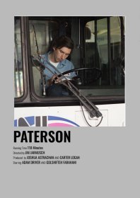 Paterson is a bus driver in the city of Paterson, New Jersey - they share the name. Every day, Paterson adheres to a simple routine: he drives his daily route, he writes poetry into a notebook; he stops in a bar and drinks exactly one beer; he goes home to his wife, Laura. By contrast, Laura's world is ever changing. New dreams come to her almost daily. The film quietly observes the triumphs and defeats of daily life, along with the poetry evident in its smallest details.